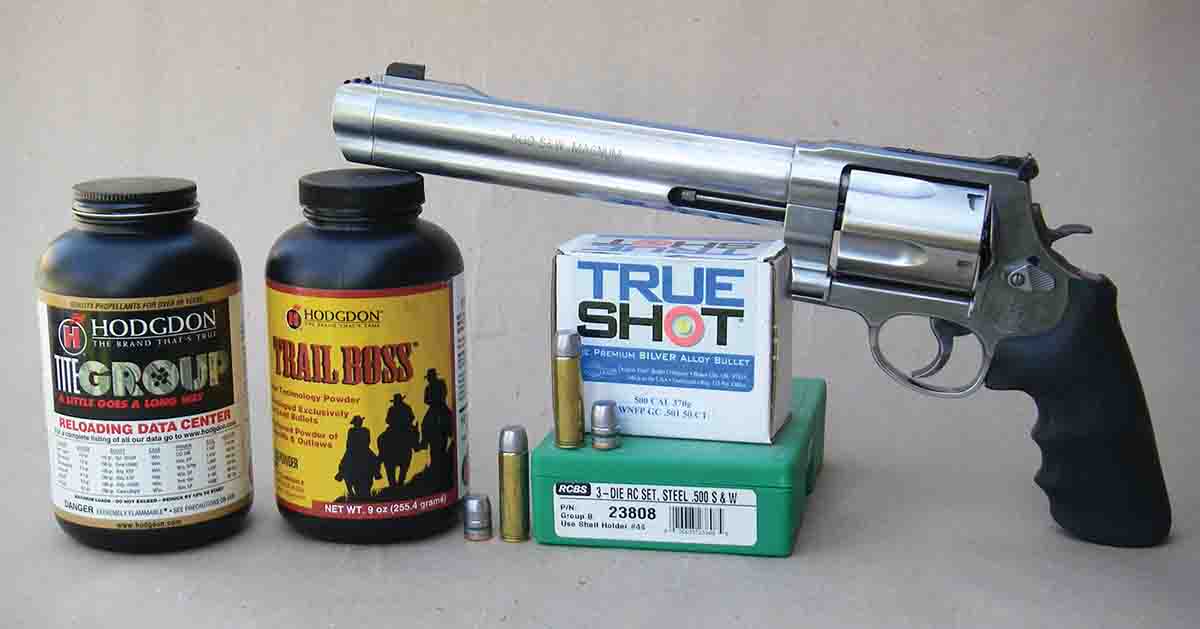 Q: Several years ago I purchased a Smith & Wesson Model 500 chambered in .500 S&W Magnum with the 4-inch barrel to take on Alaskan fishing trips. When I first purchased it, I fired it enough to become reasonably competent, but I never really liked shooting it due to its recoil. Unfortunately, since my last fishing trip, it only rests quietly in the safe. After reading your comments on reduced magnum revolver loads, I thought that perhaps I could enjoy the gun with a load that is going around 800 to 900 fps with a 350- to 400-grain cast bullet. And I would like a second load that will push the same bullet to around 1,200 fps. Do you have any suggestions for bullet choice and powder type and charge weights?