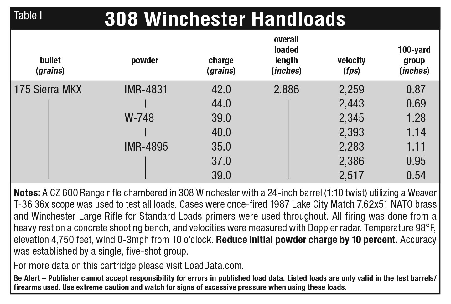 Half MOA on its first outing. With performance like that, and with only seven loads tested, Sierra’s MKX is worthy of the MatchKing name, and the bonus is that Sierra load data for the MatchKing also works with the MKX.