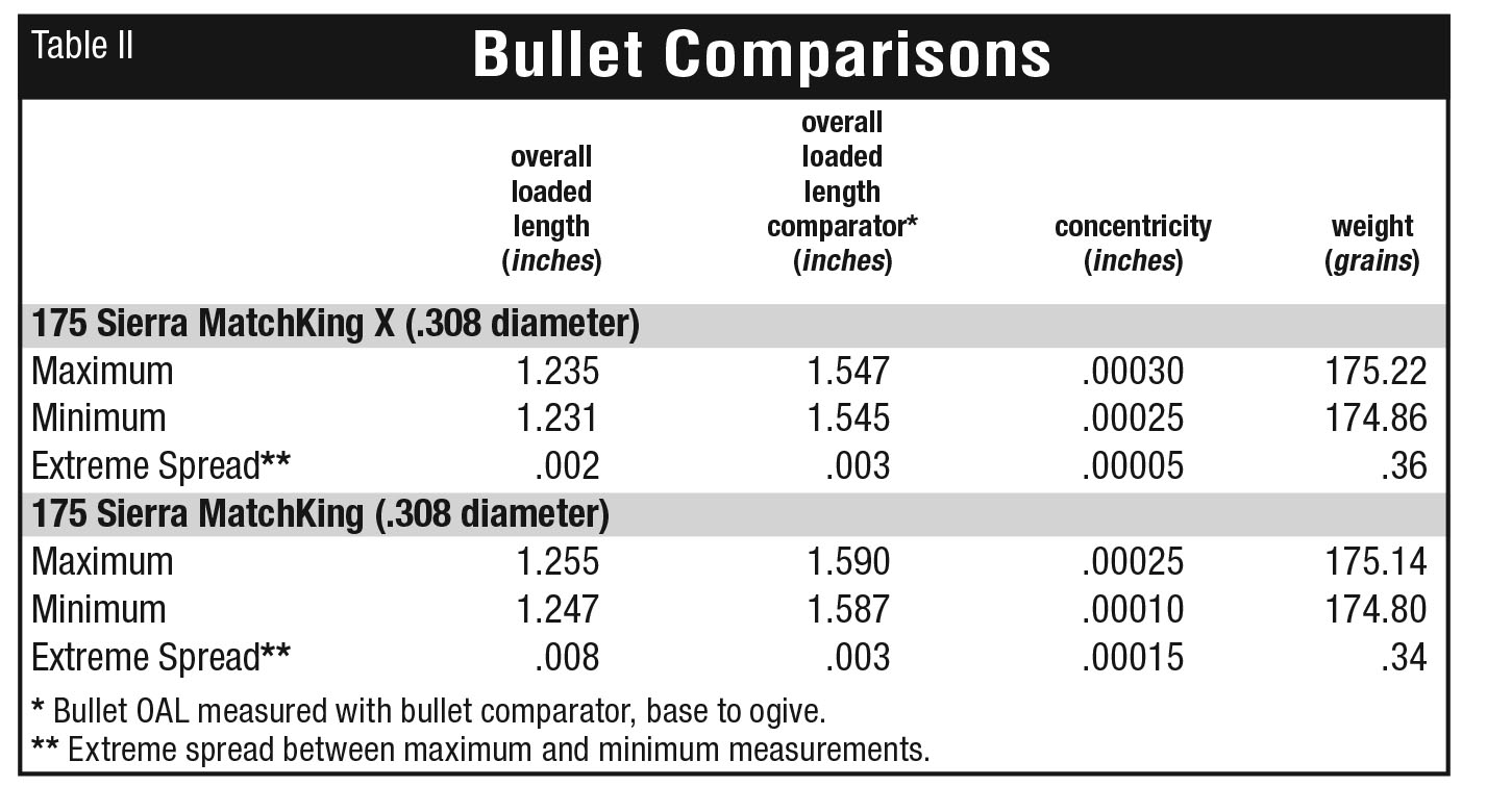 In speaking with a Sierra technician, I learned that, in addition to what I discovered at the reloading bench, the MKX jacket and core material are softer than those on the MatchKing, and the tip of the jacket is precisely skived, all to promote reliable expansion in a game animal. Considering the MKX differs from the MatchKing in consistency, BC, length, relocation of the start of the ogive (which starts about .028 inch further back than on the 175-grain MatchKing), jacket hardness, core hardness,and terminal performance, I reckon that makes it a completely new bullet and that Sierra is taking advantage of the MatchKing’s long and deserved reputation for precision in giving the MKX the MatchKing name. Does that matter? No, it’s just marketing. What matters is that the MKX is a superb precision bullet for hunting, and Sierra can call it whatever it wants.