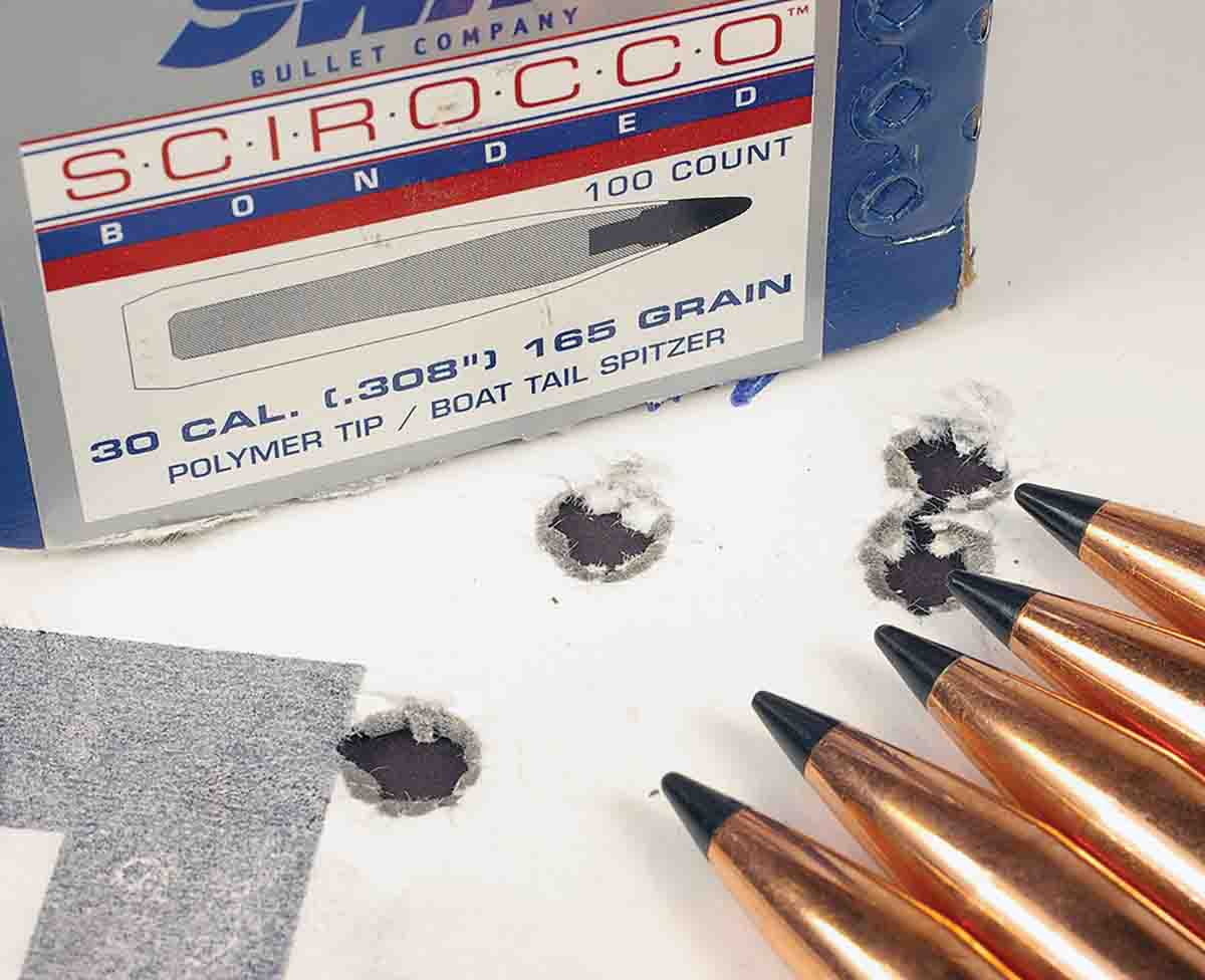 I started shooting 165-grain cast bullets loaded with 27.0 grains of LT-32 powder from the .308. The load’s recoil was mild to begin with, because the bullets had a muzzle velocity only slightly over 1,800 fps. Add the rifle’s weight and muzzle brake, and the scope’s crosshairs barely jumped off targets at 100 yards.