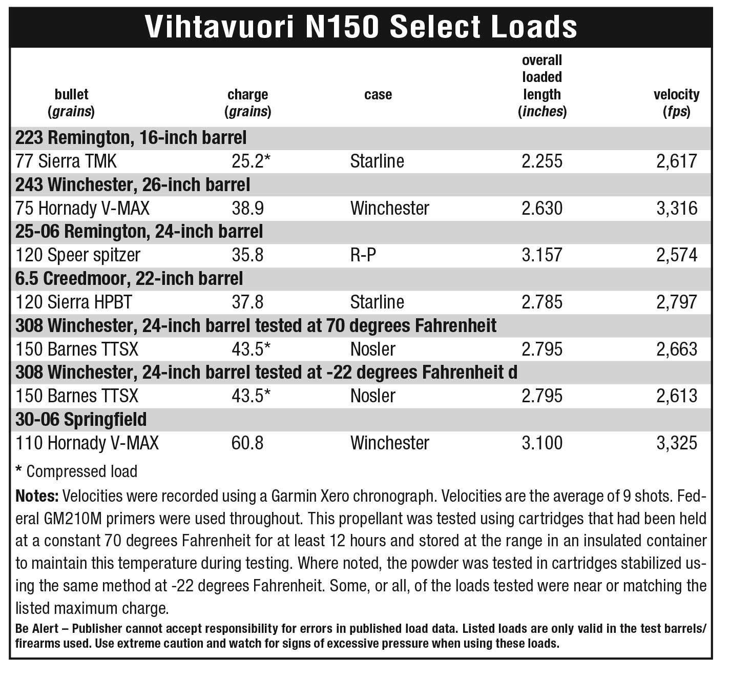 With a burn rate that is close to IMR-4350, and a grain that measures .037 inch in diameter and an average of .047 inch in length, N150 had filled the 308 Winchester cases almost completely. The Barnes 150-grain TTSX bullets had made noticeable crunching sounds as they were seated. These were heavily compressed loads.