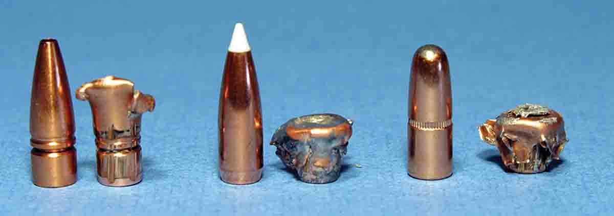 I set the stack of paper 25 yards from the muzzle, where impact velocity would be high. Not surprisingly, the monolithic Lehigh 110-grain bullet penetrated deepest (9 inches) while retaining 89 percent of its weight. However, the other two bullets also performed very well, as I expected after field experience with both. The Nosler 125-grain AccuBond penetrated 8 inches and retained 78 percent of its weight. While the Hornady retained only 42 percent of its weight, it was the heaviest bullet so it still penetrated 7 inches. (Hornady InterLocks I’ve recovered from big game have retained an average of about half their weight, give or take 10 percent.)